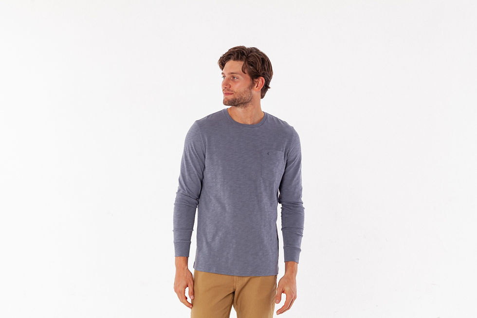 Criquet-Long Sleeve Slub Cotton Pocket T-Shirt-Steel